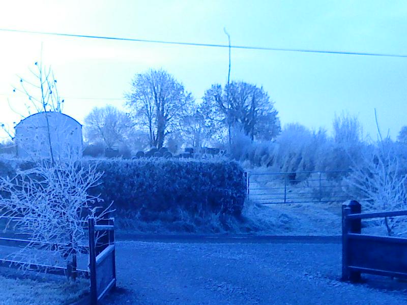 Very cold here this morning. We're in the middle of a cold snap. In spite of the adverse conditions, Lee and Roo got back safely from their trip to see Granny and the tuddens yesterday, thank God.